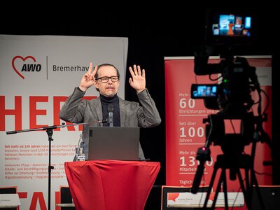 Petra Sklorz, AWO-Pflege-Geschäftsführerin in Bremen, schilderte die immensen Alltagsherausforderungen in der Praxis: die Personalknappheit, hohe Kosten für Leiharbeiter*innen, um akute Engpässe abzufangen, die Hürden in der Ausbildung (nicht anerkannte oder wegen Flucht nicht nachweisbare ausländische Abschlüsse), Sprachprobleme, hohe Investitionskosten für die stationären Einrichtungen – auch wegen gesetzlicher Vorgaben – („Bei der Barrierefreiheit geht es manchmal um Millimeter“). Um das Personal zu halten und zu gewinnen, müssten alle Register bezogen werden: Attraktive Arbeitszeitmodelle wie eine 4-Tage-Woche, Zulagen fürs Einspringen, Benefits, Social-Media-Präsenzen ... „Wir haben tolle Leute und machen das alles – und trotzdem ist es ein steter Kampf“, sagte Petra Sklorz: „Und warum nur hat die Politik so spät auf die seit Jahren absehbaren Entwicklungen reagiert?“